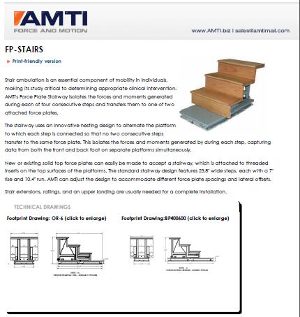 品牌:AMTI三维测力台 功能:3个可拆卸的台阶组,安装在固定在地面的测力台上,可以同时采集前脚和后脚的数据,并获得每一步的力和力矩