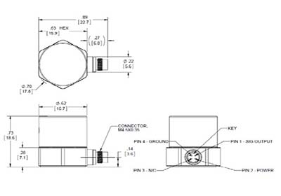 Dytran 7705A3 扩展低频(ELF™) 加速度传感器,灵敏度:100 mV / g,量程:20 g,4针 M4.5 x 0.35 径向连接,10-32 螺孔安装,15 克,-51 to 121 ℃,扩展低频(ELF™),对偶技术